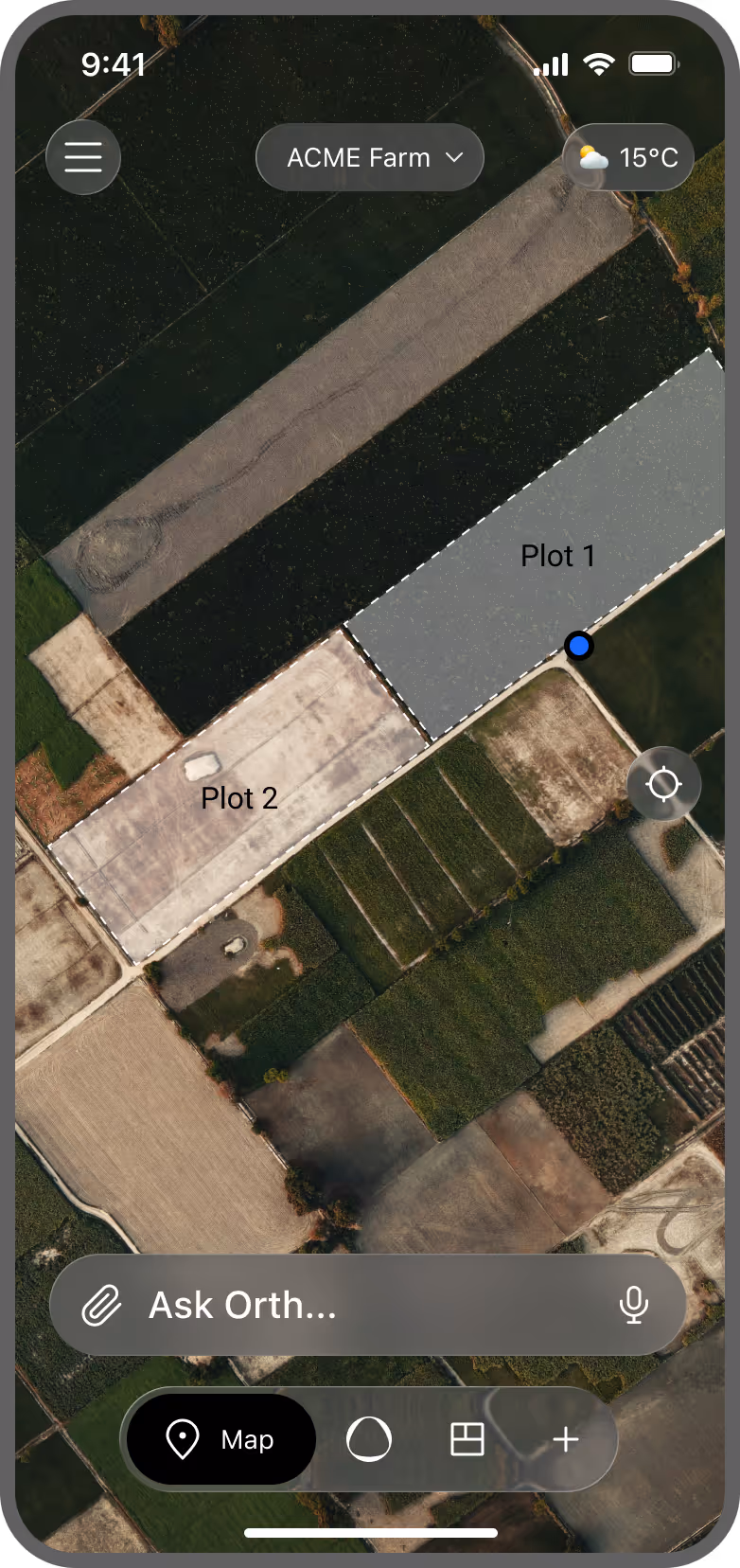Getting started with ORTH is simple. Just map your fields and set your crops, it takes minutes, not weeks. There’s no complex setup, no sensors required, no long onboarding. From day one, ORTH begins tailoring insights to your specific land and growing conditions.